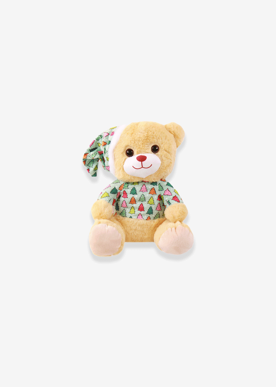 Este tierno oso es el peluche perfecto para estas fiestas. Con su suave pelaje y su encantador pijama de Navidad, ¡este oso no solo abraza corazones, sino que también añade un toque festivo a cualquier rincón de tu hogar!